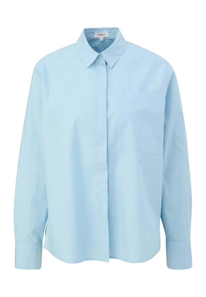 Stay chic and sophisticated with this s.Oliver Women's Blue Casual/Elegant Shirt, perfect for the warmer months ahead. The vibrant blue color will add a pop of color to your Spring/Summer wardrobe. Made of high-quality materials, this shirt is both stylish and comfortable for all-day wear. Elevate your look with this versatile piece from s.Oliver.