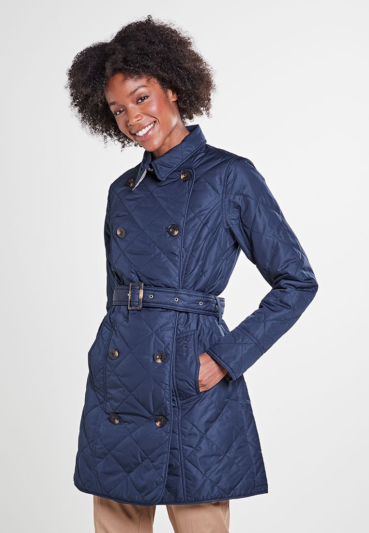 Stay stylish and cozy this season with the Barbour Short Coat for Women in a beautiful blue hue. Perfect for the Autumn/Winter months, this coat effortlessly blends casual and elegant style. Keep warm while looking chic in this classic wardrobe staple. Perfect for pairing with jeans and boots for a timeless look.