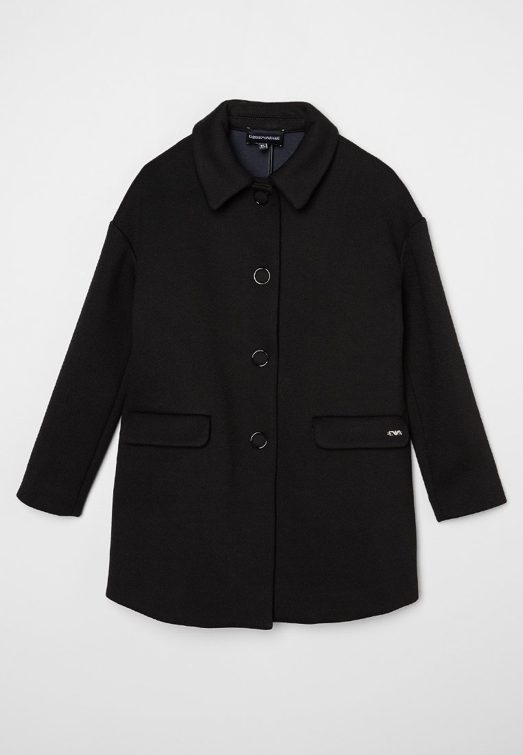 Stay stylish and sophisticated this Autumn/Winter with the Emporio Armani Short Coat for Women. This elegant black coat seamlessly blends casual and formal style, making it versatile for any occasion. Its sleek design and high-quality material will keep you warm and chic throughout the season. Elevate your wardrobe with this timeless piece from Emporio Armani.