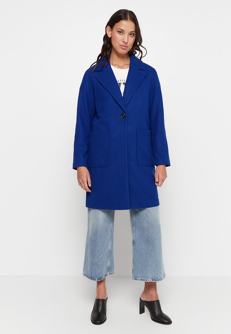 Stay stylish and cozy this Autumn/Winter season with the Only Short Coat in a chic shade of Blue. Perfect for both casual and elegant occasions, this versatile coat is a must-have for any woman's wardrobe. With its flattering fit and on-trend color, this coat will keep you warm and fashionable all season long. Add a touch of sophistication to any outfit with this timeless piece from Only.