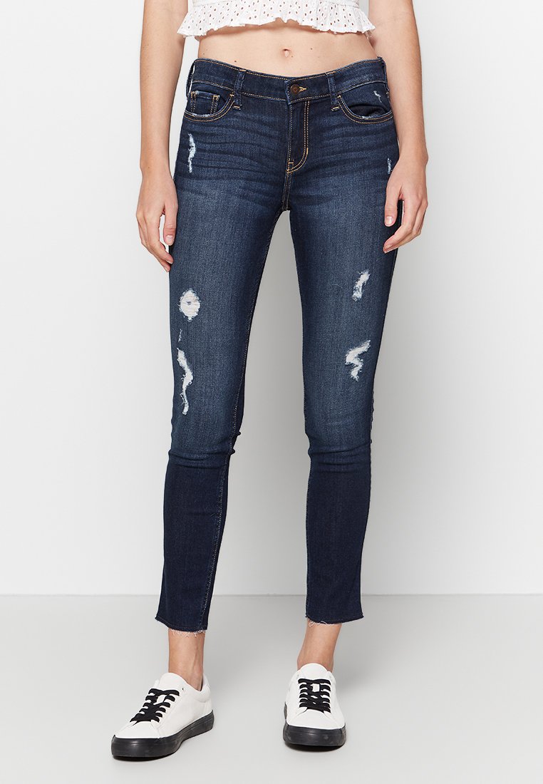 Stay stylish and comfortable this season with these Hollister Co. casual women's skinny fit jeans in a rich blue hue. Perfect for the Autumn/Winter months, these pants are versatile and easy to pair with your favorite sweaters and boots. The skinny fit design flatters your figure, while the high-quality denim ensures durability and long-lasting wear. Upgrade your wardrobe with these must-have blue skinny jeans from Hollister Co.