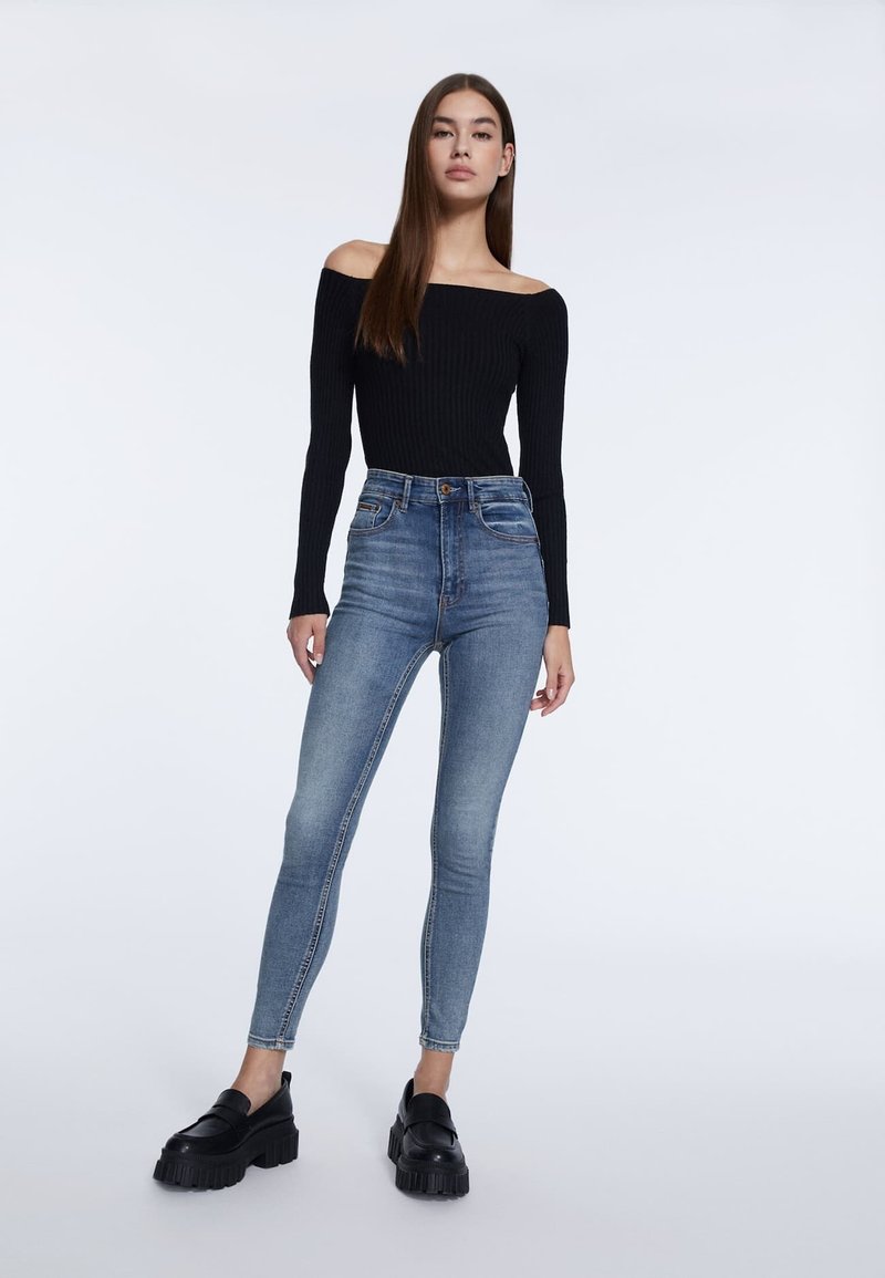 Stay comfortable and stylish this Autumn/Winter season with the Casual Skinny Fit Jeans from Stradivarius in a trendy Blue color. Perfect for everyday wear, these pants are a versatile addition to any wardrobe. The sleek design and flattering fit make them a must-have item for any fashion-forward woman. Embrace the cool weather in style with these essential jeans from Stradivarius.