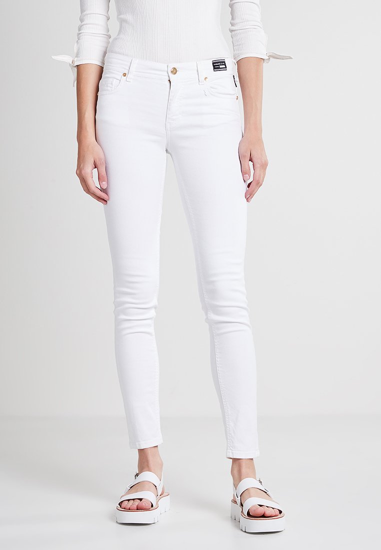 Stay chic and comfortable this Autumn/Winter with these casual white skinny fit jeans from Versace Jeans. Perfect for any casual outing, these pants are versatile and stylish. Pair them with your favorite sweater or coat for a cozy look that never goes out of style. Bring a touch of luxury to your wardrobe with these must-have pants for women.