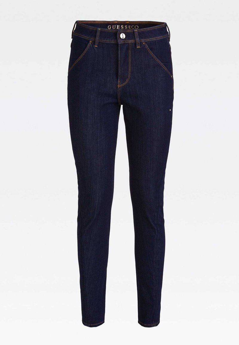 Stay cozy and stylish this Autumn/Winter season with these casual slim fit jeans from Guess. The deep blue color adds a pop of color to your wardrobe, while the comfortable fit is perfect for everyday wear. Pair them with a cozy sweater and boots for a chic and effortless look. Upgrade your denim collection with these must-have pants for women.
