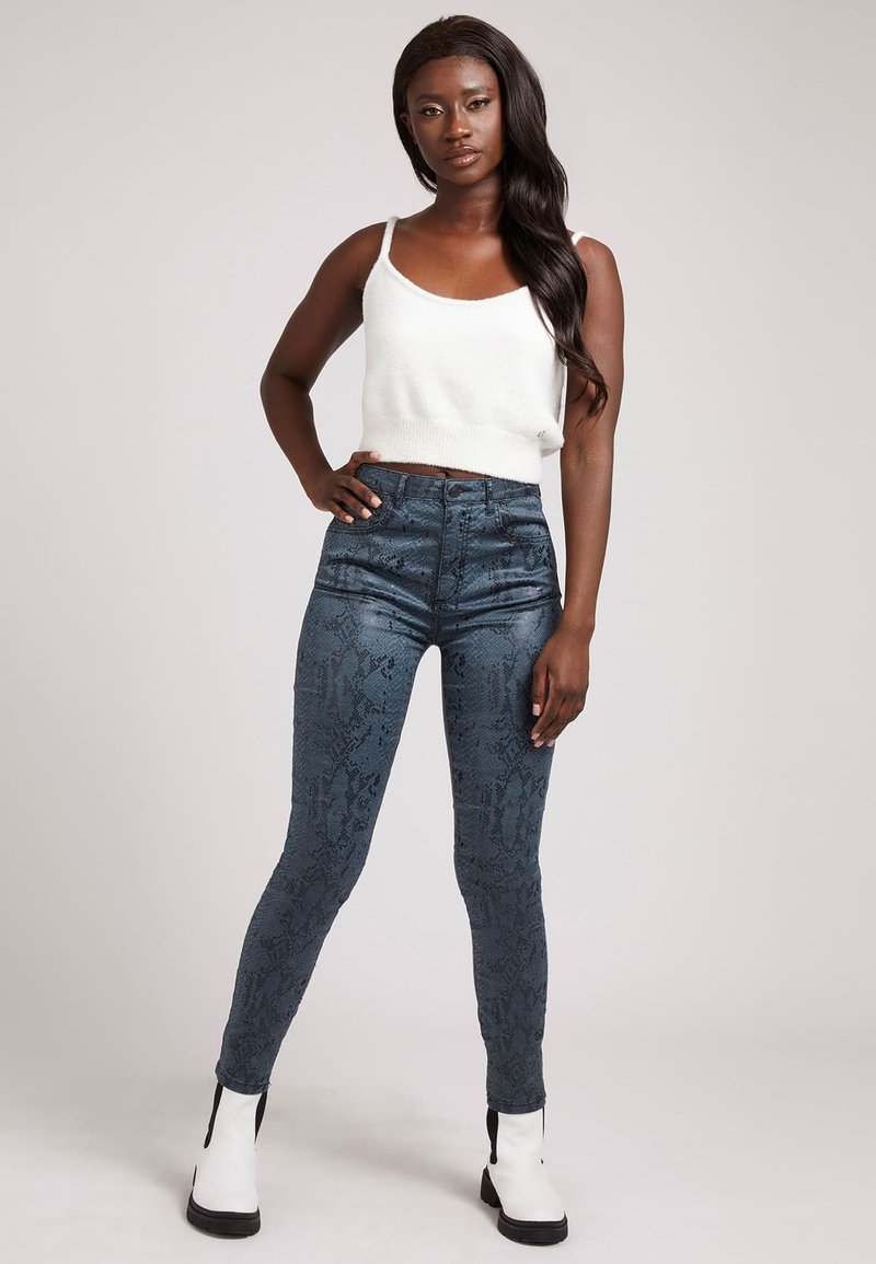 Stay cozy and stylish this Autumn/Winter season with these casual slim fit jeans from Guess. The deep blue color adds a pop of color to your wardrobe, while the comfortable fit is perfect for everyday wear. Pair them with a cozy sweater and boots for a chic and effortless look. Upgrade your denim collection with these must-have pants for women.