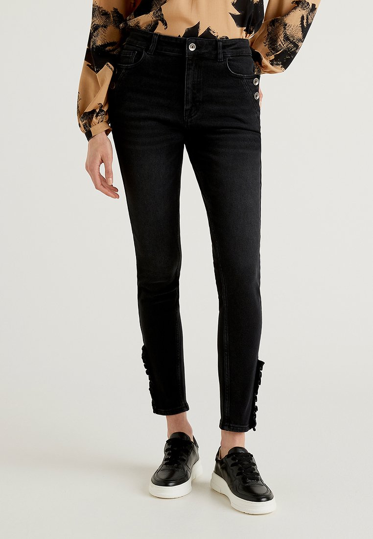 Stay cozy and stylish this Autumn/Winter season with United Colors of Benetton's Casual Black Pants for Women. These slim fit jeans offer a perfect blend of comfort and fashion, making them a versatile wardrobe staple. Whether you're running errands or meeting friends for coffee, these pants will keep you looking effortlessly chic. Add a touch of sophistication to your everyday look with these sleek and timeless black pants.