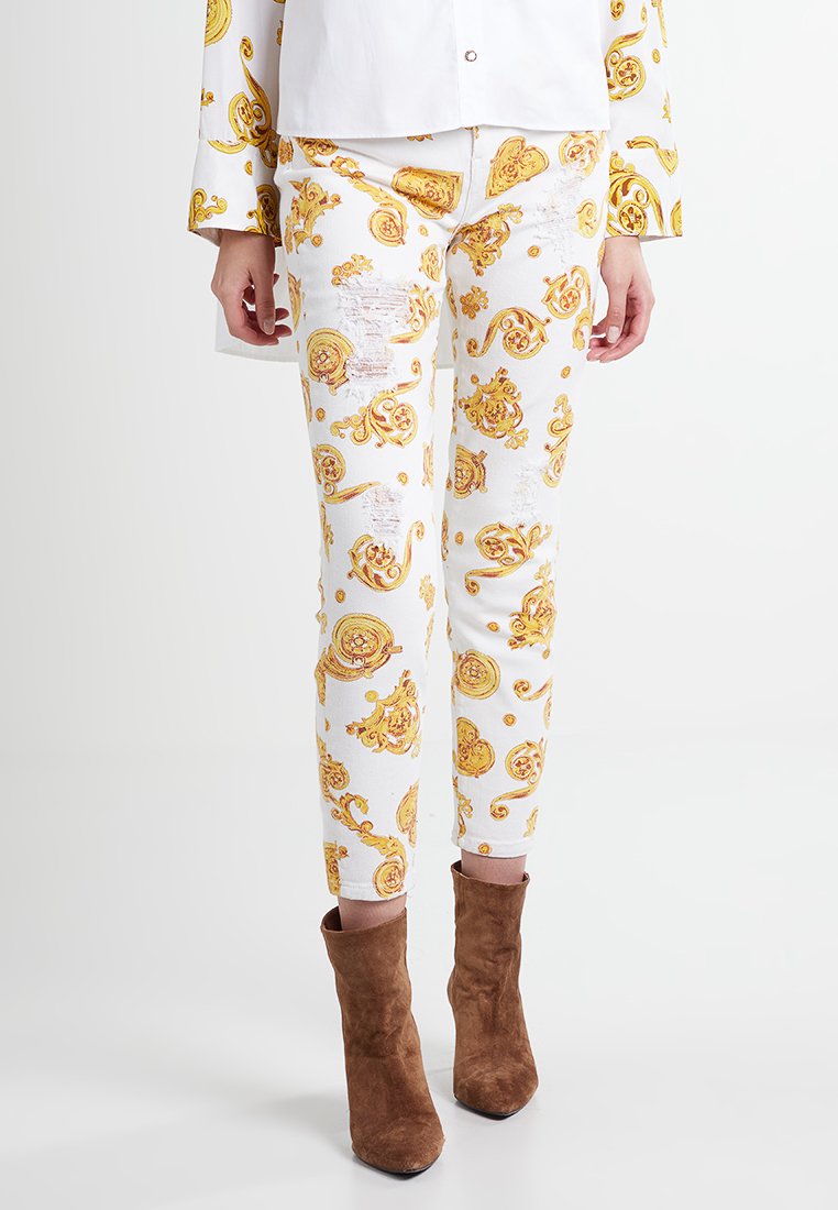 Stay comfortable and stylish this Autumn/Winter season with these Casual White Pants for Women from Versace Jeans Couture. These slim fit jeans are perfect for casual outings or everyday wear, adding a touch of sophistication to your wardrobe. Made with high-quality materials, these pants offer both style and comfort for a versatile fashion statement. Upgrade your look with these chic and trendy pants from Versace Jeans Couture.