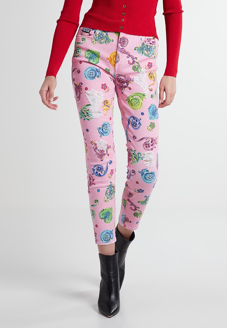 Stay stylish and comfortable this Autumn/Winter season with these Casual Slim Fit Jeans from Versace Jeans Couture. Featuring a vibrant Multi color palette, these pants are perfect for any casual outing. Made for women who appreciate both fashion and practicality, these jeans are a must-have addition to your wardrobe. Elevate your look effortlessly with these versatile and chic pants.