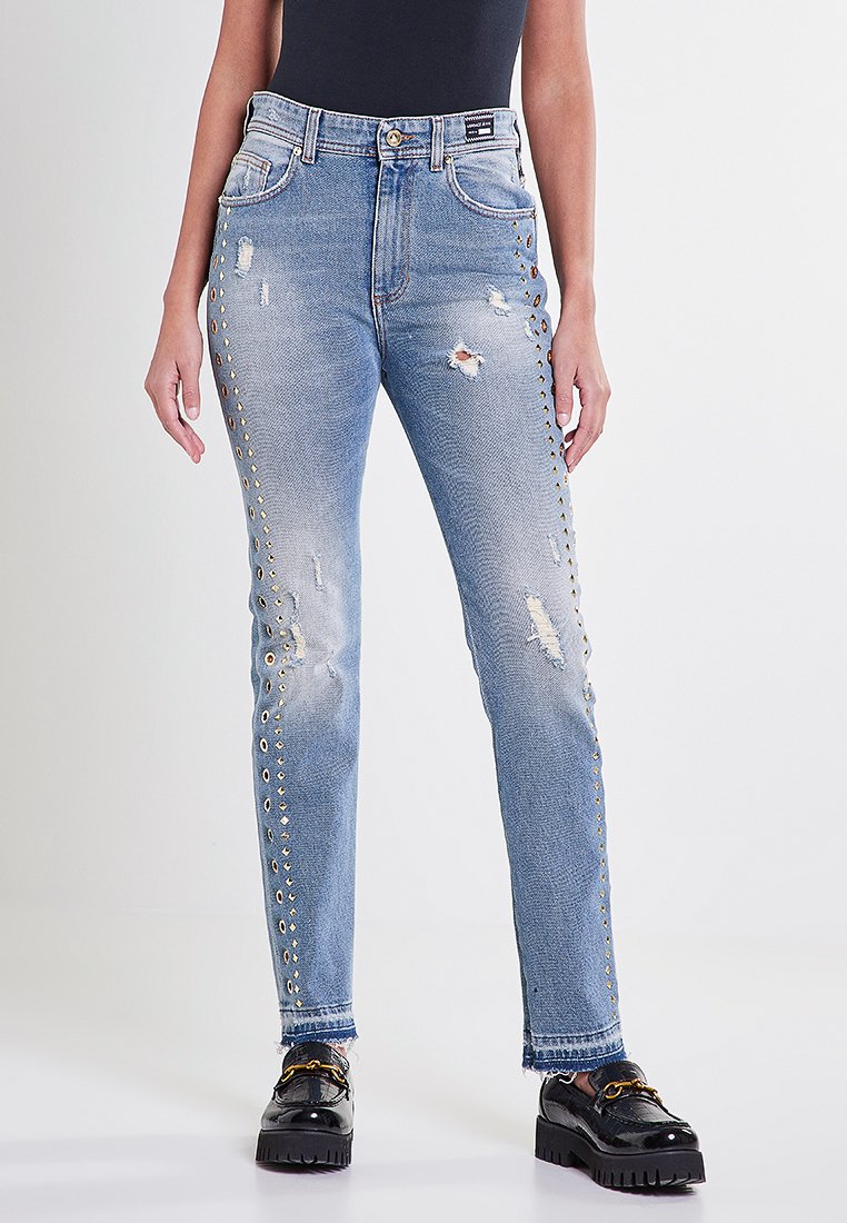 Stay stylish and comfortable this Autumn/Winter season with these Versace Jeans slim fit pants for women. In a classic shade of blue, these casual pants are perfect for everyday wear. Whether you're running errands or meeting friends for coffee, these pants will keep you looking chic. Add a touch of luxury to your wardrobe with Versace Jeans.