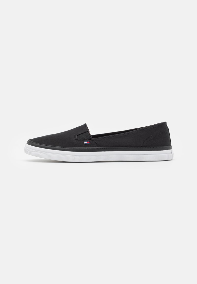 Stay stylish and comfortable this Spring/Summer with these slip-on shoes from Tommy Hilfiger. Perfect for a casual look, these black shoes are versatile and easy to pair with any outfit. The slip-on design makes them convenient for on-the-go days. Get ready to step out in style with these Tommy Hilfiger slip-on shoes.