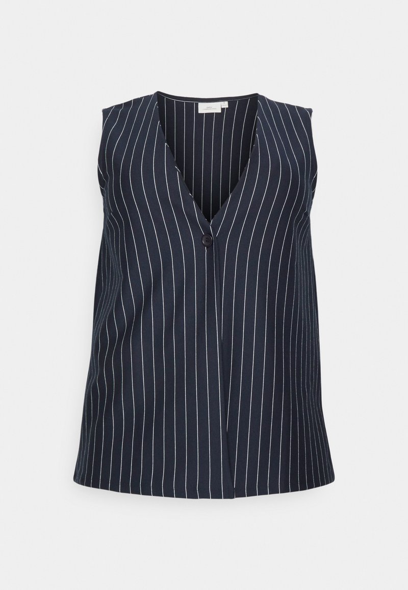 Introducing the Casual/Elegant Women's Blue Sleeveless Top by ONLY Carmakoma, perfect for the Spring/Summer season. This versatile piece can be dressed up or down for any occasion. Stay cool and stylish in this chic top that effortlessly transitions from day to night. A must-have addition to your wardrobe for a touch of sophistication.