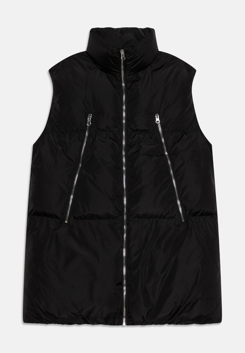 Stay chic and comfortable in this MM6 Maison Margiela Women's Black Sleeveless Vest. Perfect for the warmer months, this casual yet elegant piece is versatile enough to be dressed up or down for any occasion. The sleek black color adds a touch of sophistication to any outfit, making it a must-have for your Spring/Summer wardrobe. Embrace effortless style with this stylish smanicato.