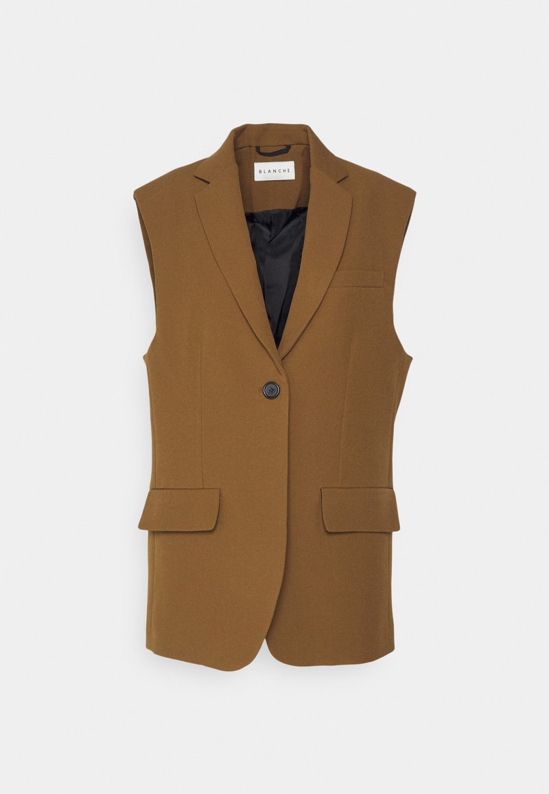 The BLANCHE Women's Casual/Elegant Brown Vest is the perfect addition to your Spring/Summer wardrobe. Made with high-quality materials, this stylish vest can be dressed up or down for any occasion. Its versatile design and flattering fit make it a must-have piece for the season. Stay chic and comfortable with the BLANCHE smanicato in Brown.