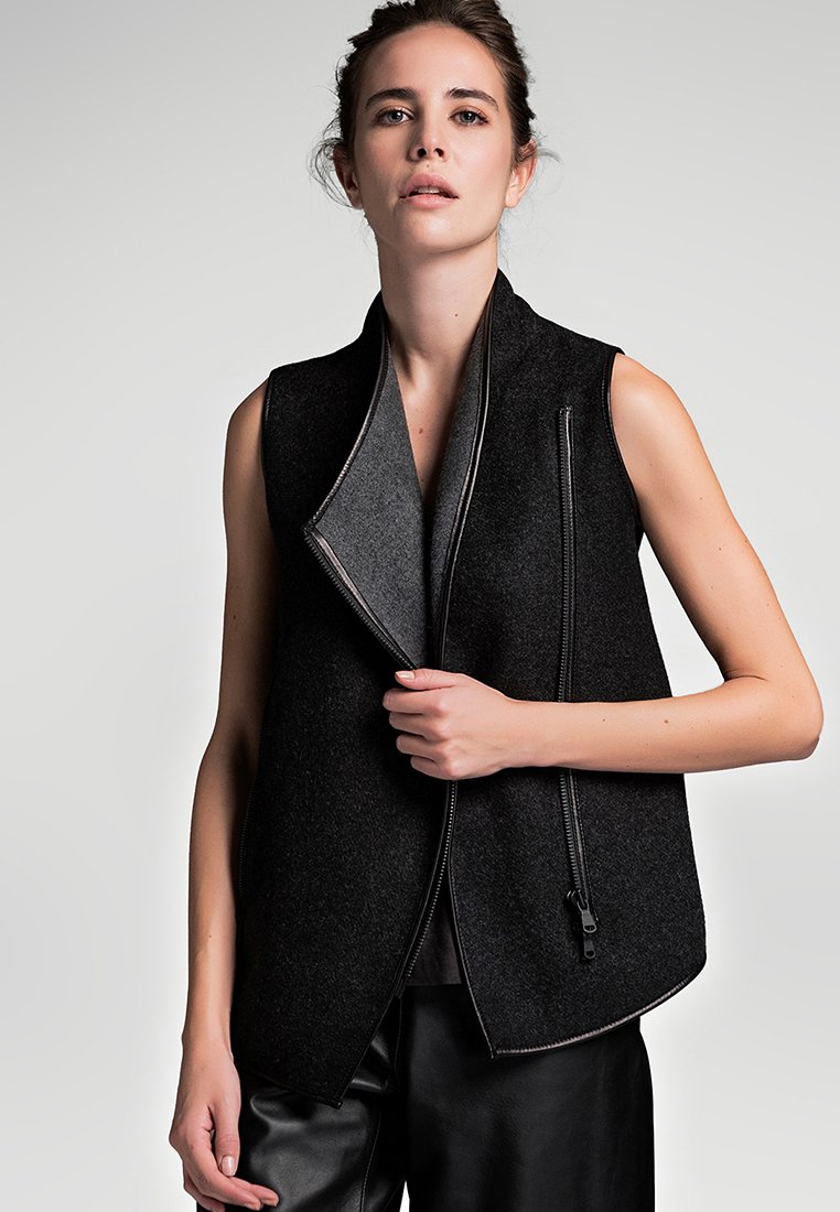 Stay effortlessly chic this Spring/Summer season with the Vespucci by VSP Women's Grey Sleeveless Jacket. This casual yet elegant piece is perfect for any occasion, whether it's a day out with friends or a dinner date. Made from high-quality materials, this smanicato jacket combines style and comfort seamlessly. Elevate your wardrobe with this versatile and timeless piece from Vespucci by VSP.