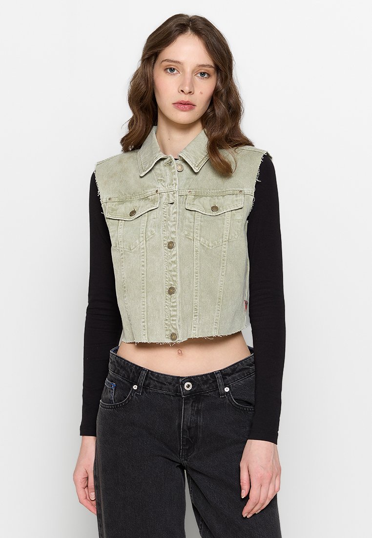 Stay chic and comfortable with the Guess Casual/Elegant Green Waistcoat for Women. Perfect for the Spring/Summer season, this versatile piece can be dressed up or down for any occasion. Crafted from high-quality materials, the smanicato features a flattering silhouette and trendy design. Elevate your wardrobe with this effortlessly stylish addition from Guess.
