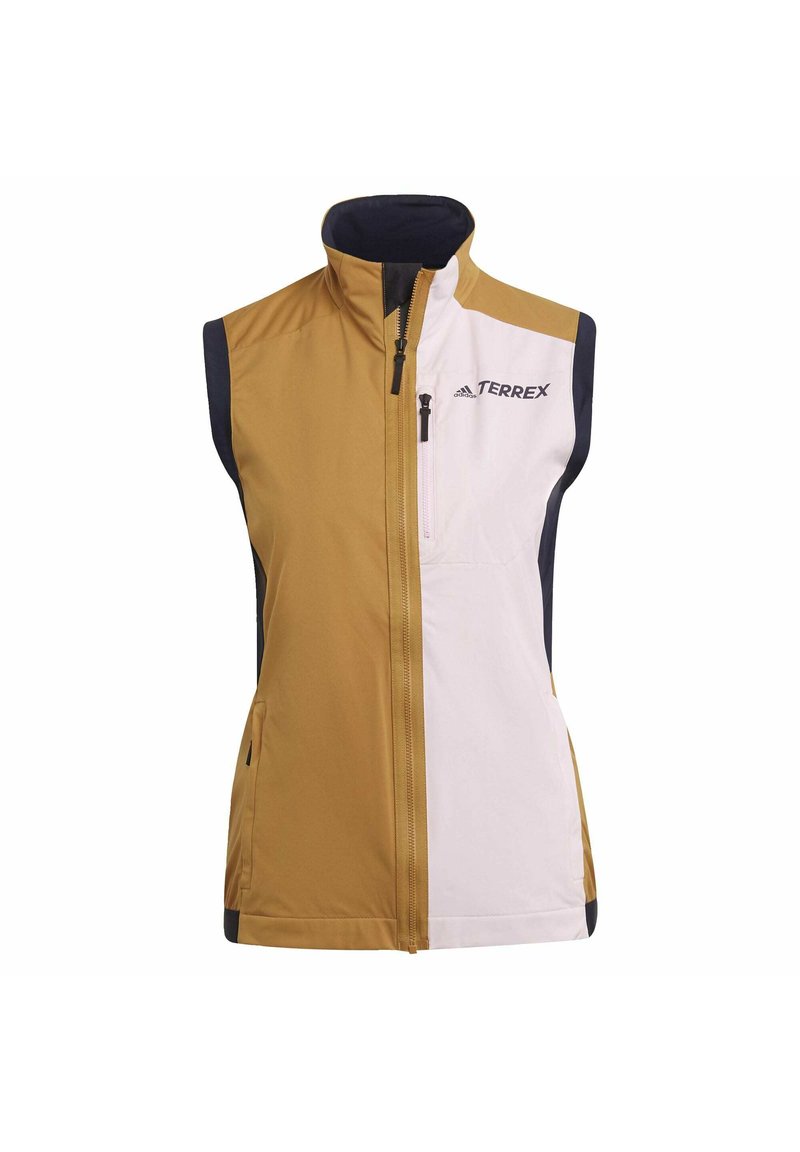 Introducing the adidas performance Casual/Elegant Women's Sleeveless Jacket, perfect for the Spring/Summer season. This stylish brown jacket combines comfort and elegance with a sporty twist. Ideal for layering over any outfit for a chic and effortless look. Elevate your wardrobe with this versatile and fashionable piece from adidas performance.