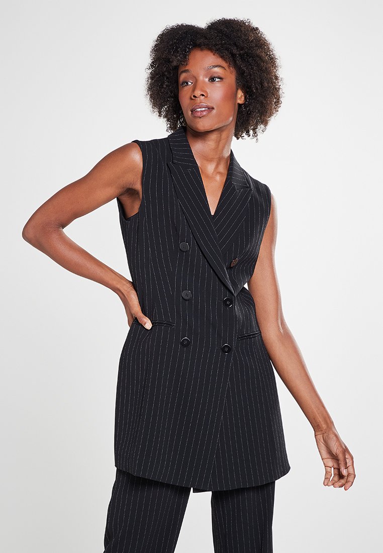 Stay effortlessly chic this Spring/Summer with the Marc Cain black sleeveless top. This versatile piece seamlessly transitions from day to night with its casual yet elegant style. Perfect for any occasion, this top is a must-have for the modern woman looking to add a touch of sophistication to her wardrobe. Pair with jeans for a casual look or dress it up with a skirt for a night out.