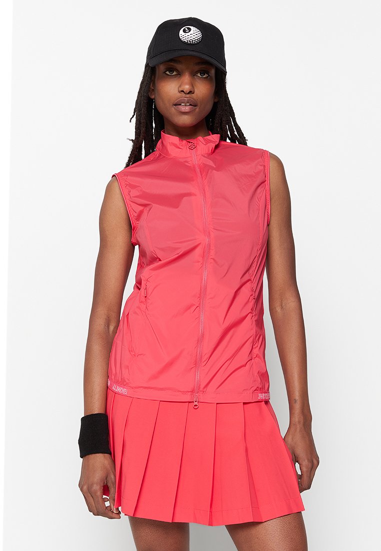 Introducing the J.LINDEBERG Casual/Elegant Women's Pink Vest, perfect for the Spring/Summer season. This versatile piece combines a relaxed style with a touch of sophistication. Dress it up for a night out or pair it with jeans for a chic daytime look. Stay stylish and comfortable all season long with this must-have wardrobe staple.