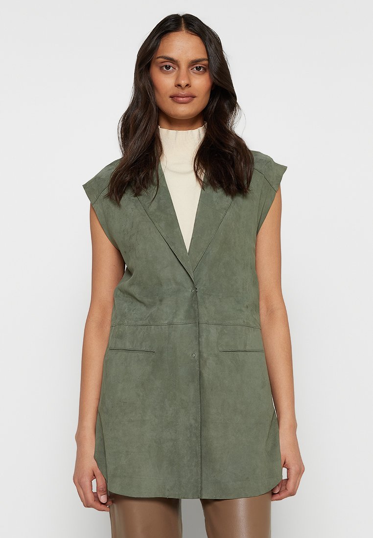 Stay stylish and elegant this Spring/Summer season with this casual yet classy green RIANI Women's Sleeveless Jacket. Perfect for adding a pop of color to any outfit, this versatile smanicato is a must-have for your wardrobe. Made from high-quality materials, it exudes sophistication and effortless chic. Upgrade your look with this timeless piece from RIANI.