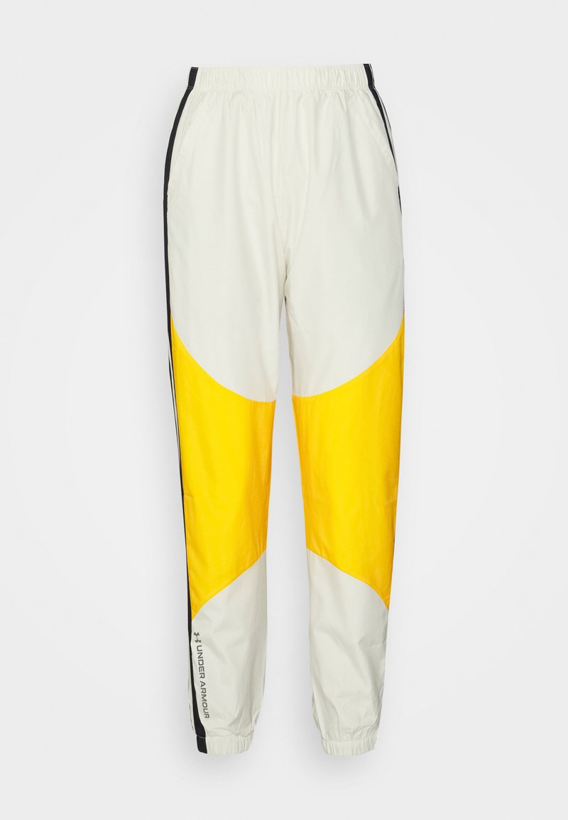 Stay effortlessly stylish this spring/summer season with these Casual Women's Pants from Under Armour in a chic Beige hue. Perfect for any casual outing, these sporty pants are designed for comfort and a relaxed fit. With the iconic Under Armour logo on the side, these pants are a must-have for any fashion-forward woman. Elevate your wardrobe with these versatile and trendy pants.