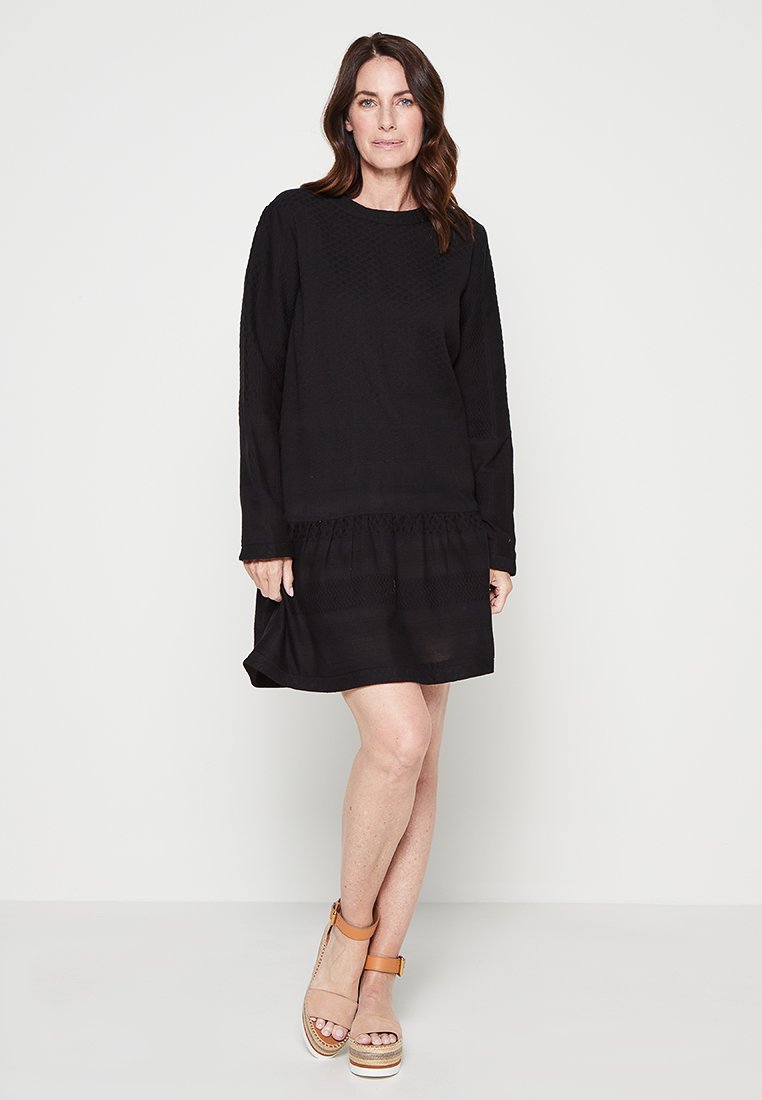 Stay chic and comfortable in this Casual/Elegant Black dress from SUMMERY Copenhagen. Perfect for the warmer seasons, this versatile piece is a must-have for any wardrobe. Whether you're heading to a weekend brunch or a summer wedding, this dress will keep you looking stylish. Add a statement necklace and sandals for a complete look.