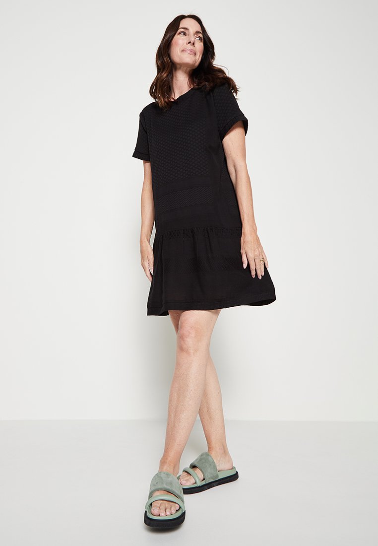 Stay chic and comfortable in this Casual/Elegant Black dress from SUMMERY Copenhagen. Perfect for the warmer seasons, this versatile piece is a must-have for any wardrobe. Whether you're heading to a weekend brunch or a summer wedding, this dress will keep you looking stylish. Add a statement necklace and sandals for a complete look.