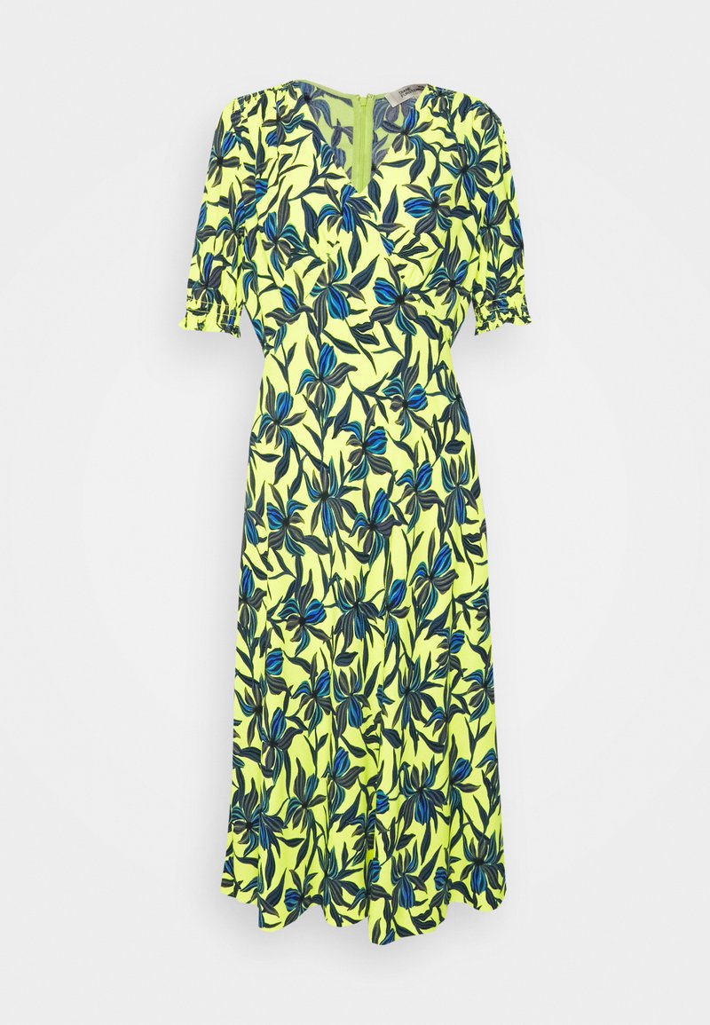Introducing the Spring/Summer must-have from Diane von Furstenberg: a Casual/Elegant Women's dress in a sunny Yellow hue. This versatile piece effortlessly transitions from day to night with its flattering silhouette and sophisticated design. Perfect for any warm-weather occasion, this dress combines style and comfort to elevate your seasonal wardrobe. Embrace the chic charm of this timeless staple and step out in effortless elegance.