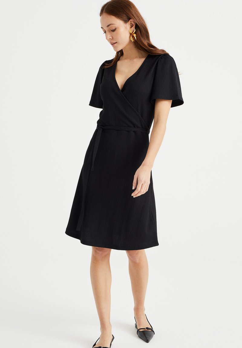 This casual yet elegant black dress from WE Fashion is perfect for the Spring/Summer season. Its versatile style makes it easy to dress up or down for any occasion. The feminine silhouette and lightweight fabric ensure both comfort and style. Make a chic statement in this must-have addition to your wardrobe.