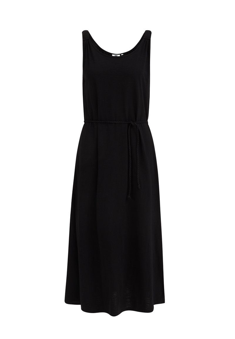 This casual yet elegant black dress from WE Fashion is perfect for the Spring/Summer season. Its versatile style makes it easy to dress up or down for any occasion. The feminine silhouette and lightweight fabric ensure both comfort and style. Make a chic statement in this must-have addition to your wardrobe.