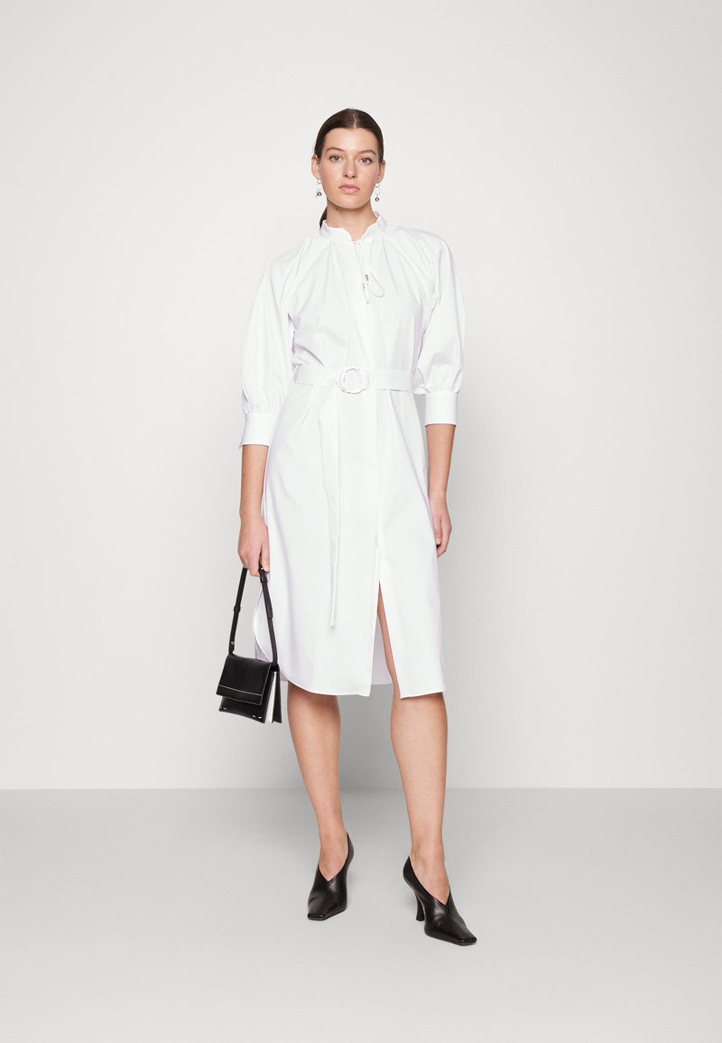 Stay effortlessly chic this Spring/Summer in this white Boss dress. Combining casual comfort with elegant style, this versatile piece is perfect for any occasion. Its clean lines and breathable fabric make it a must-have for your warm weather wardrobe. Elevate your look with this stylish dress that exudes sophistication and sophistication.