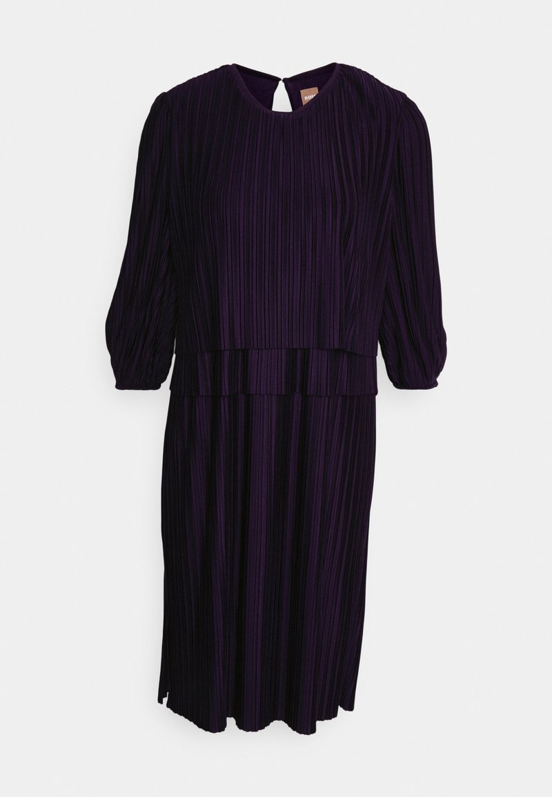 Stay stylish and comfortable this Spring/Summer with this elegant violet dress from Boss. Perfect for any casual or elegant occasion, this versatile piece is a must-have for any woman's wardrobe. Its soft fabric and flattering fit make it a go-to choice for warm weather days. Add a pop of color to your look with this chic and timeless dress.