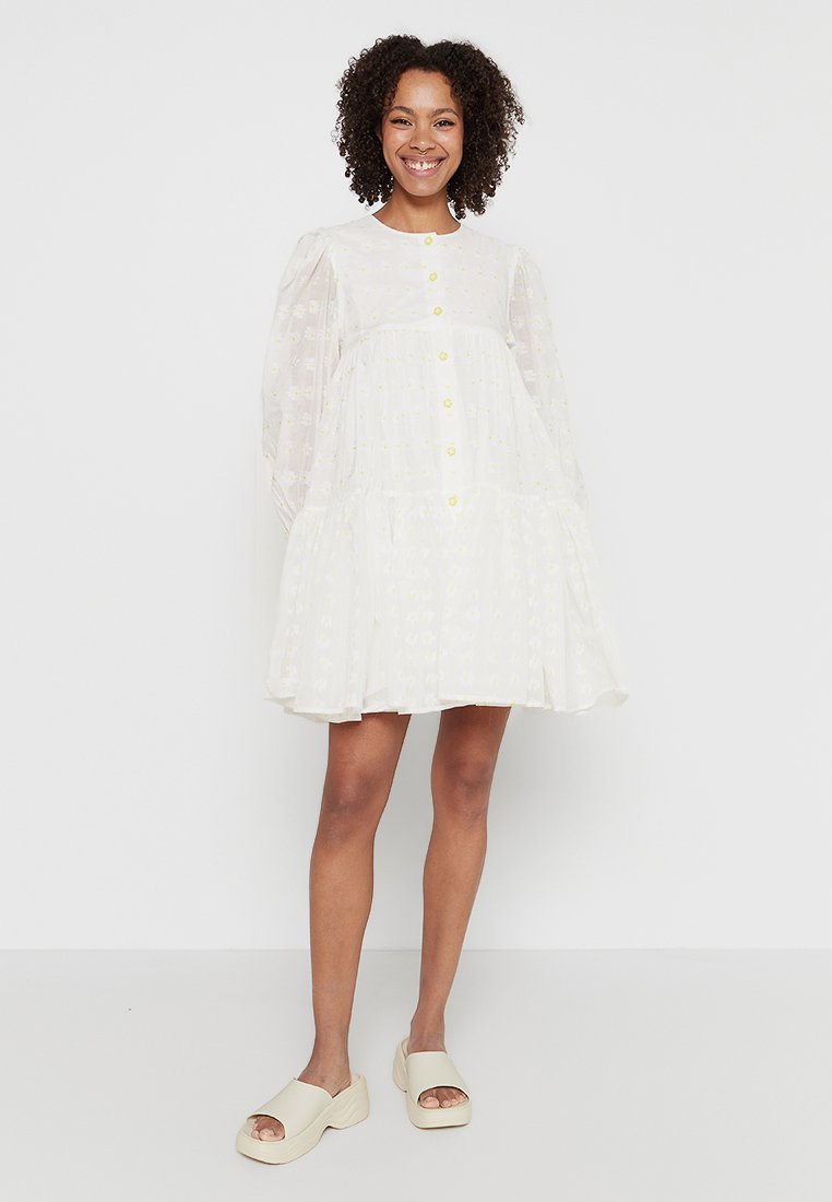 Introducing the perfect blend of casual and elegant style with the Manoush women's dress for the Spring/Summer season. This stunning white dress exudes sophistication and versatility, making it a must-have for any wardrobe. Whether you're attending a daytime event or a summer soirée, this dress will keep you looking effortlessly chic. Elevate your warm-weather wardrobe with this timeless piece from Manoush.