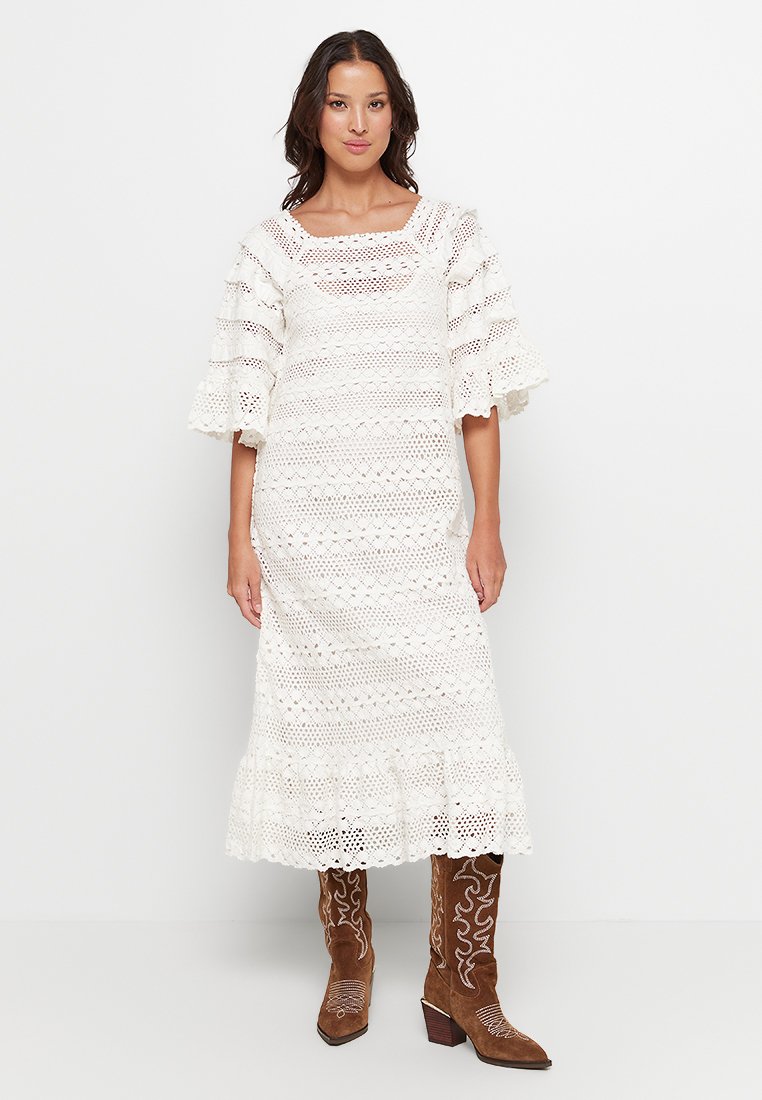 Introducing the perfect blend of casual and elegant style with the Manoush women's dress for the Spring/Summer season. This stunning white dress exudes sophistication and versatility, making it a must-have for any wardrobe. Whether you're attending a daytime event or a summer soirée, this dress will keep you looking effortlessly chic. Elevate your warm-weather wardrobe with this timeless piece from Manoush.