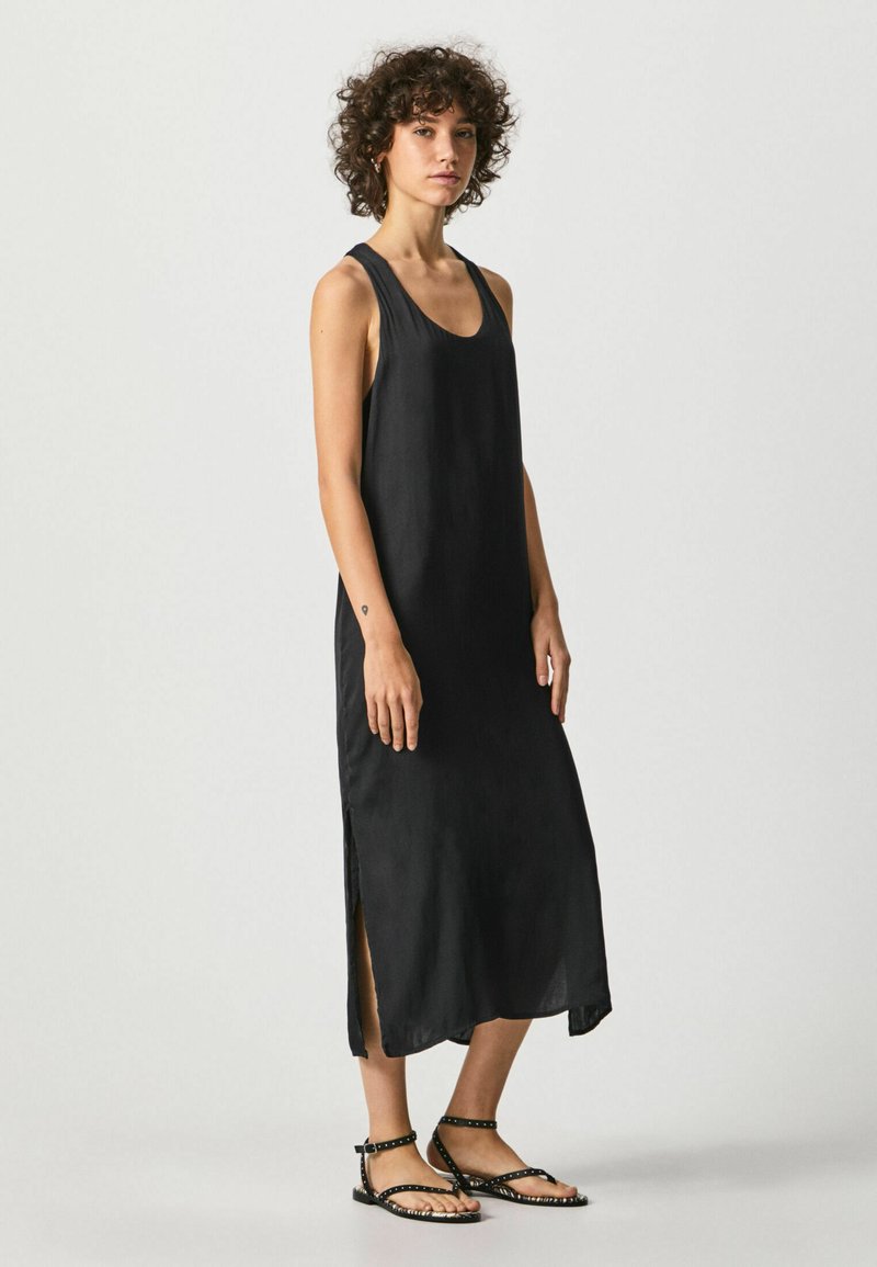 Introducing the perfect blend of casual and elegant style with this Pepe Jeans Women's Black Dress. Ideal for the Spring/Summer season, this versatile piece is sure to become a staple in your wardrobe. The sleek black color adds a touch of sophistication, while the comfortable fabric ensures all-day wearability. Elevate your look effortlessly with this must-have dress.