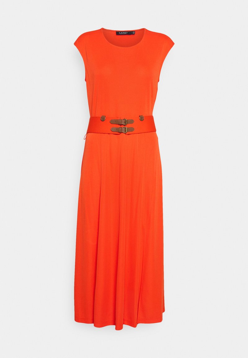 Stay stylish and chic this Spring/Summer season with this Lauren Ralph Lauren dress in a vibrant orange hue. Perfect for any casual or elegant occasion, this dress effortlessly combines comfort and sophistication. Dress it up with heels for a night out or pair it with sandals for a trendy daytime look. Add a touch of color to your wardrobe with this versatile piece.