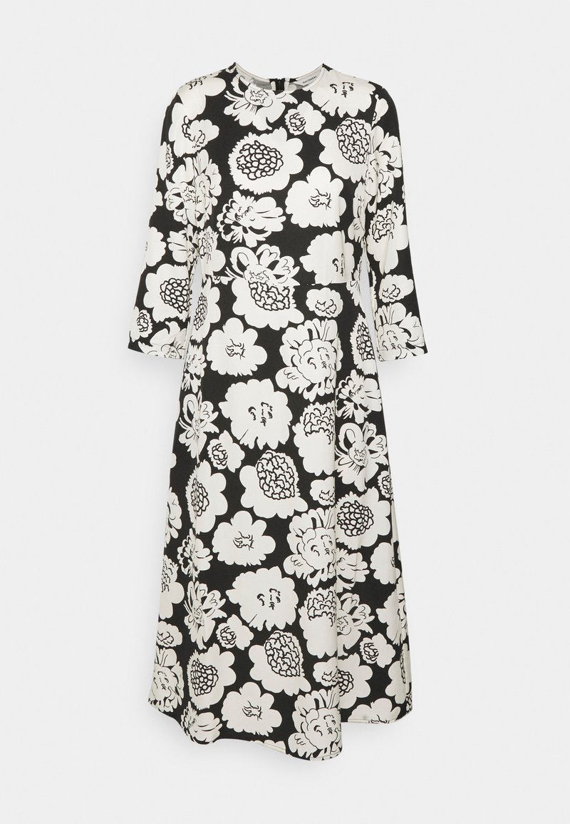 The Marimekko casual/elegant dress for women is perfect for the Spring/Summer season. In a sleek black color, this versatile piece can be dressed up or down for any occasion. The flowy silhouette and comfortable fabric make it a must-have for warm weather. Stay effortlessly chic and stylish in this Marimekko dress all season long.