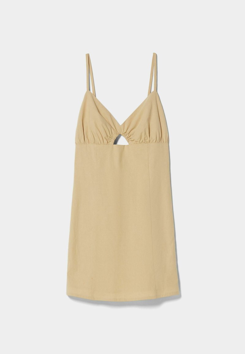 Stay effortlessly chic this Spring/Summer with Bershka's Casual and Elegant Yellow Dress. Perfect for any occasion, this versatile piece transitions seamlessly from day to night. Crafted with a flattering silhouette and trendy details, this dress is a must-have for your warm weather wardrobe. Experience the ultimate blend of comfort and style in this standout piece.