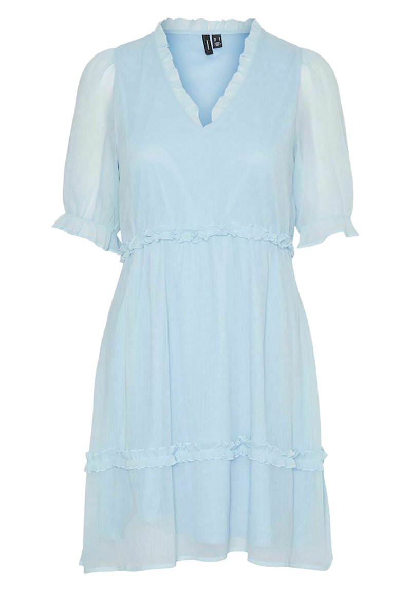 Get ready for the warmer weather with this versatile Vero Moda dress. In a beautiful shade of blue, this dress effortlessly combines casual and elegant style. Perfect for spring and summer, it is the ideal choice for any occasion. Stay stylish and chic with this must-have wardrobe staple.