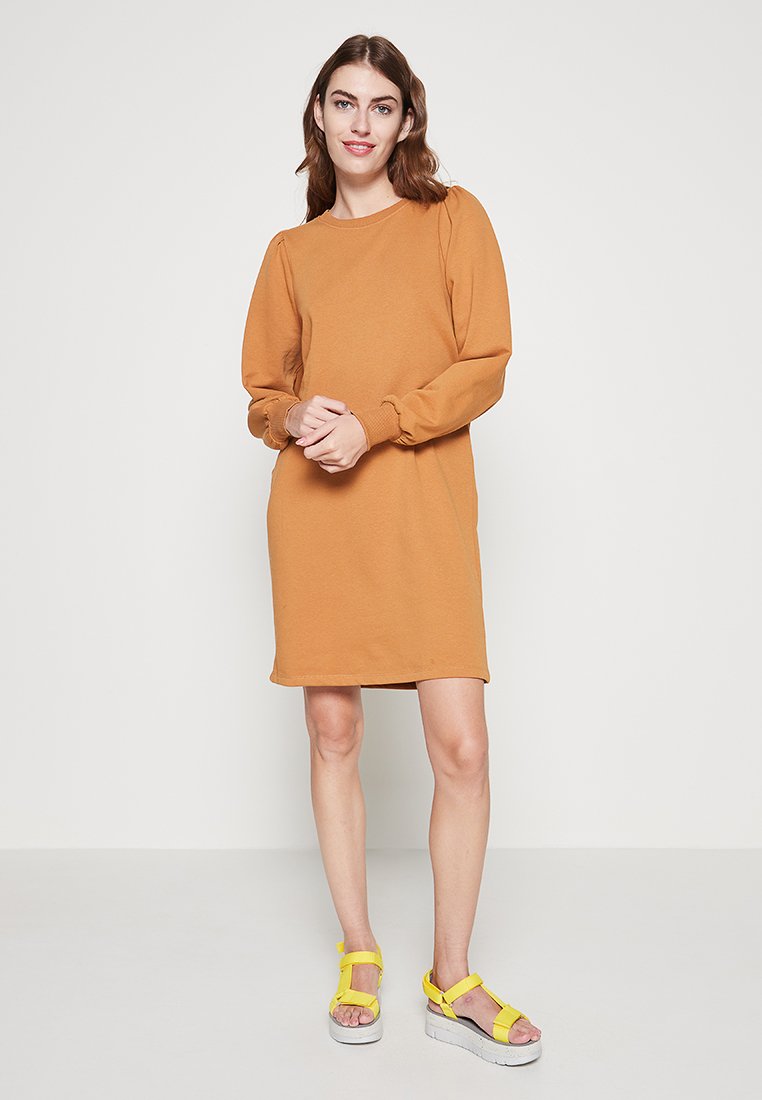 Stay chic and comfortable in this casual yet elegant brown dress from Only. Perfect for the warmer months of spring and summer, this versatile piece can easily be dressed up or down for any occasion. Made with high-quality materials, this dress is a must-have addition to any woman's wardrobe. Whether you're heading to a lunch date or a night out with friends, this dress will have you looking stylish and feeling confident.