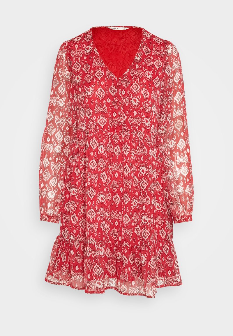 This red dress from Only is the perfect blend of casual and elegant style for women. Ideal for the Spring/Summer season, it is a versatile piece that can be dressed up or down for any occasion. Stay chic and comfortable in this must-have wardrobe staple. Make a statement in this fashionable red dress from Only.