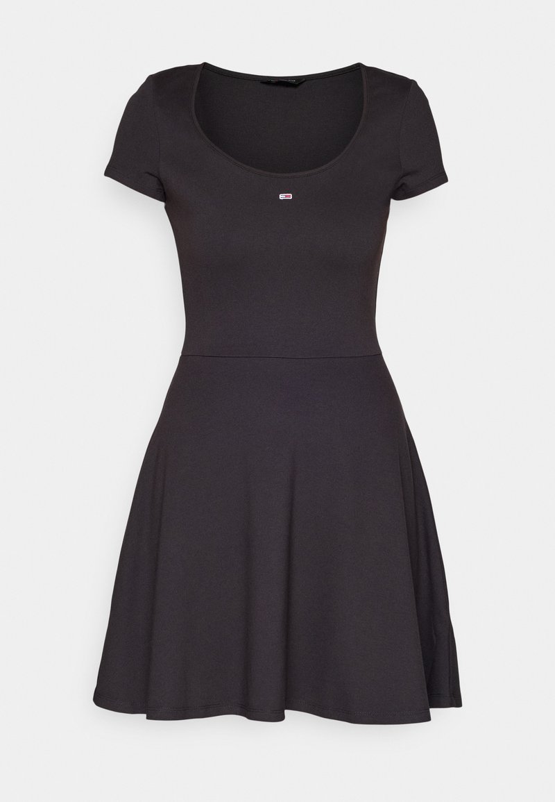 Stay effortlessly chic in this Casual/Elegant women's dress from the iconic brand Tommy Jeans. Perfect for the Spring/Summer season, this black dress combines comfort with style. Whether you're running errands or out for a night on the town, this versatile piece will have you looking fabulous. Add a touch of sophistication to your wardrobe with this must-have item.