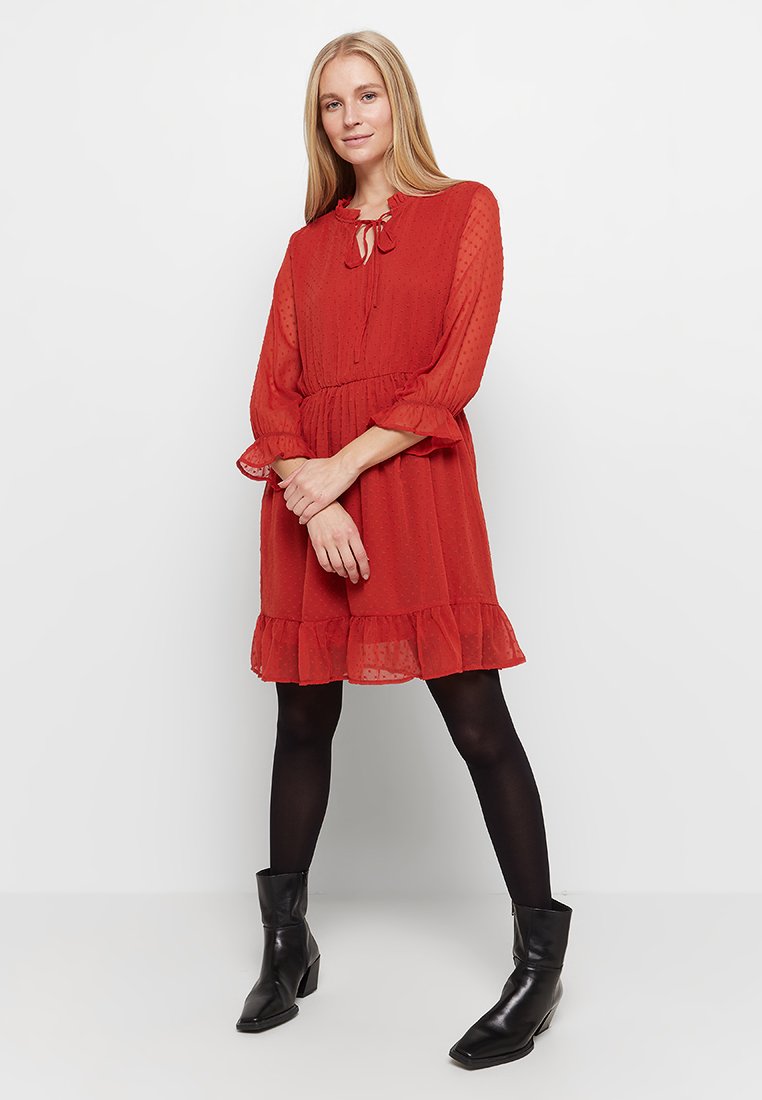 Get ready for the warmer days with this chic JDY Casual/Elegant dress for women. The vibrant red color adds a pop of excitement to your Spring/Summer wardrobe. Perfect for any casual or more formal occasion, this versatile piece will become a staple in your closet. Stay stylish and comfortable all season long in this must-have "Summer Dress."