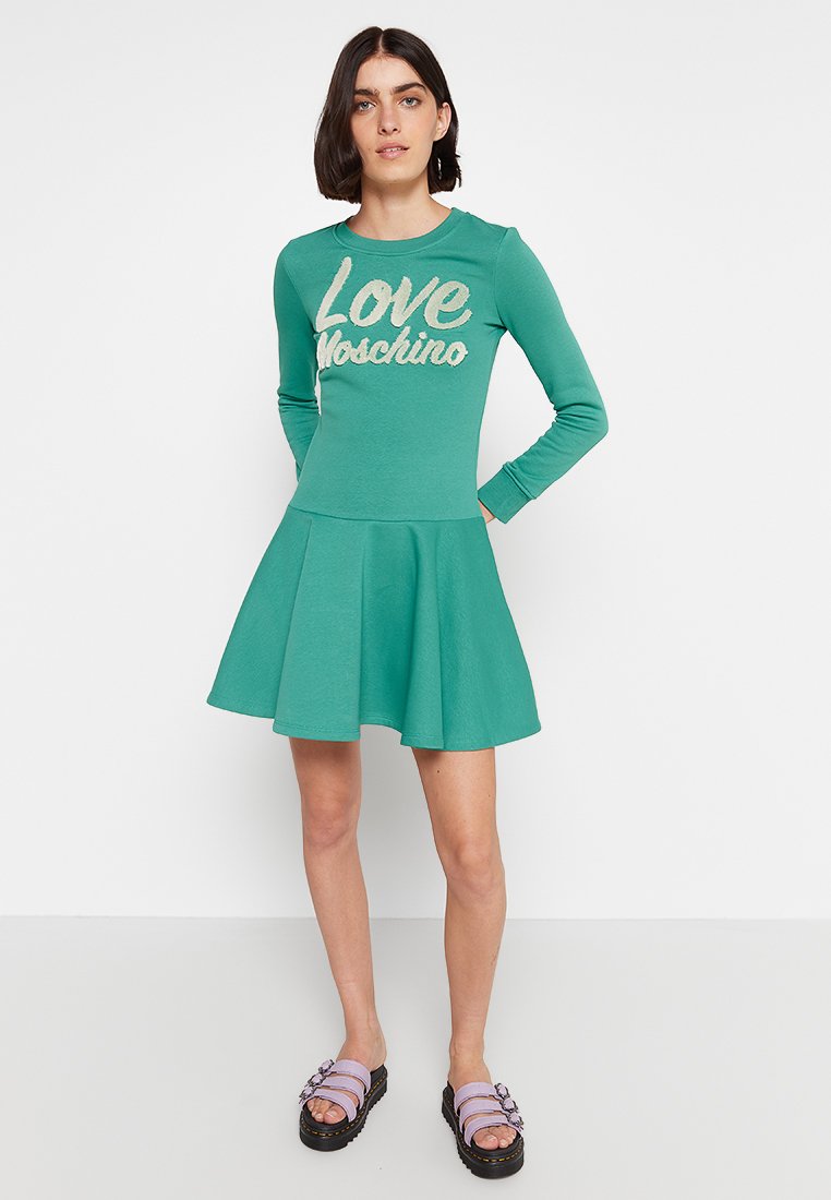 Stay effortlessly chic in this Casual/Elegant Love Moschino dress for women. Perfect for the Spring/Summer season, this green dress exudes a sense of freshness and sophistication. With its stylish design and comfortable fit, this dress is the ideal choice for any daytime event or outing. Elevate your wardrobe with this versatile piece that seamlessly combines style and comfort.