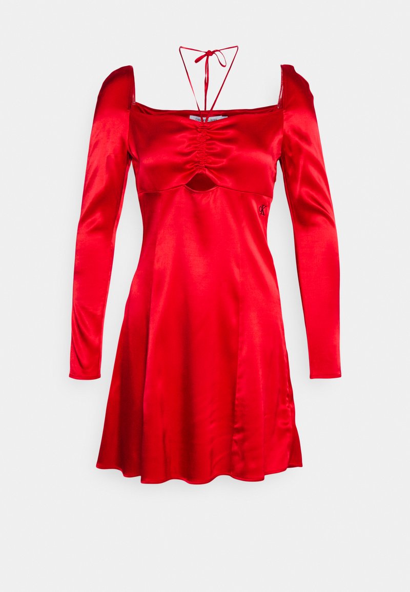 Introducing the Calvin Klein Jeans Women's Casual/Elegant Red Dress for the Spring/Summer season. This versatile piece effortlessly combines comfort with style, perfect for any occasion. The vibrant red color adds a pop of color to your wardrobe, while the Calvin Klein Jeans branding ensures a touch of sophistication. Stay chic and stylish with this must-have dress for the upcoming seasons.