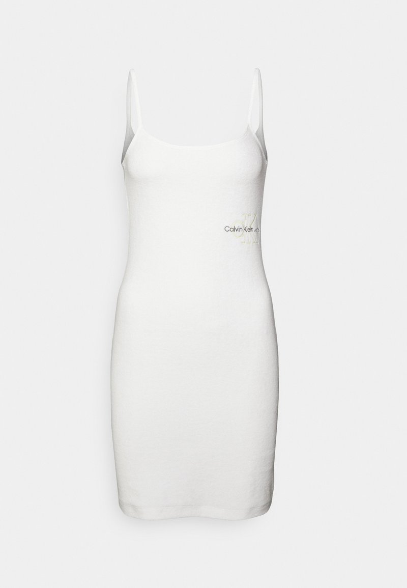 This Calvin Klein Jeans dress is the perfect blend of casual and elegant style for women. Designed in a crisp white color, it is ideal for the Spring/Summer season. The dress features a flattering silhouette and is versatile for various occasions. Elevate your wardrobe with this timeless piece.