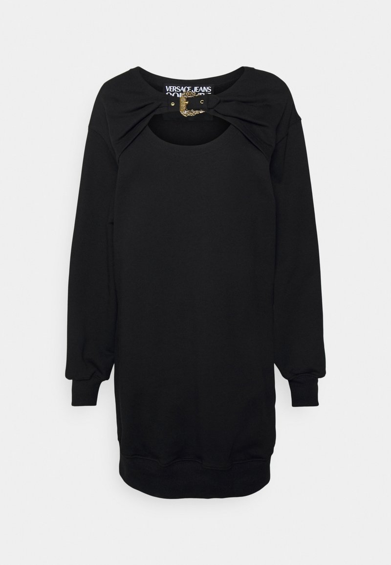 Stay chic and sophisticated in this Versace Jeans Couture Women's Black Summer Dress. Perfect for the warmer months, this casual yet elegant dress is a versatile addition to your wardrobe. Whether you're heading to a daytime event or a night out, this black dress will elevate your style effortlessly. Embrace the timeless appeal of Versace Jeans Couture with this must-have piece.