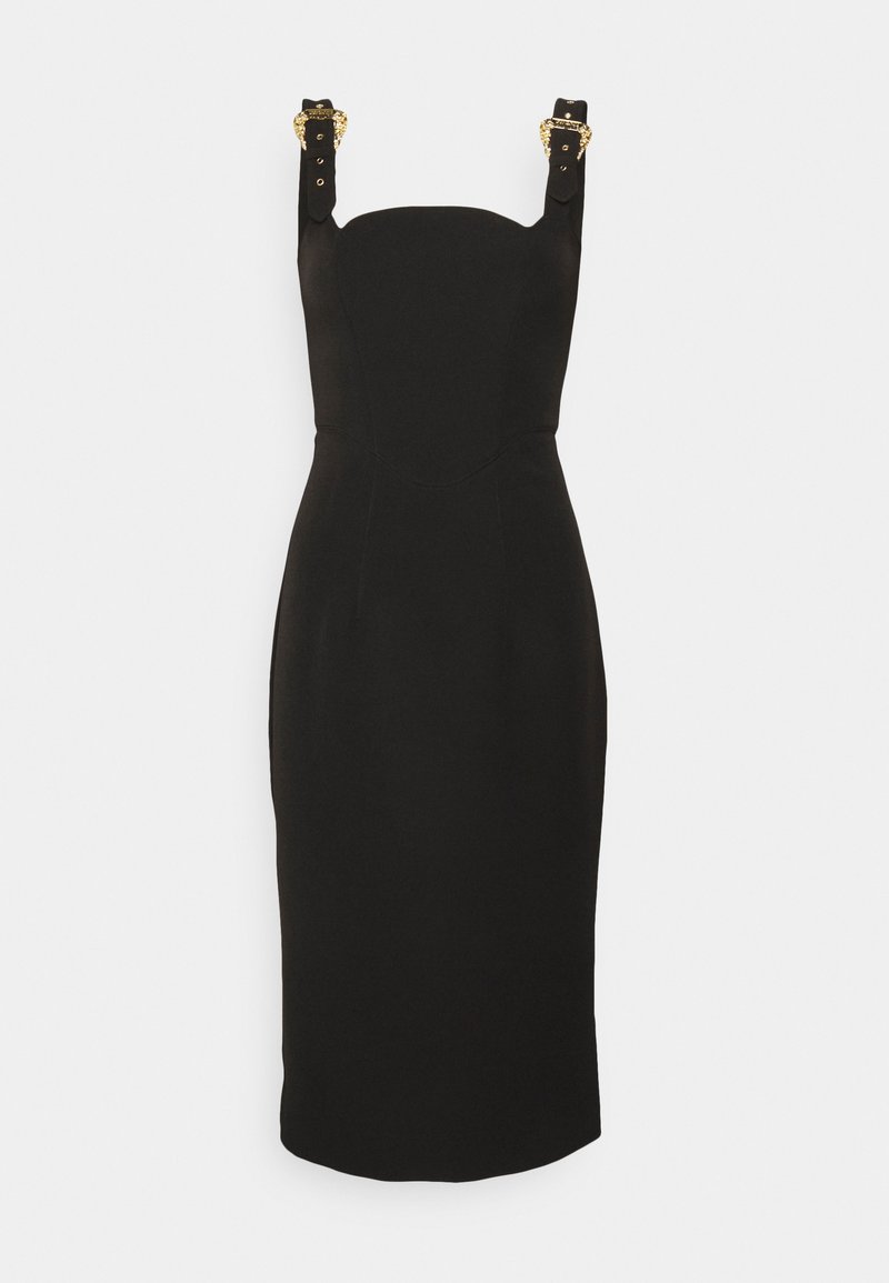 Stay chic and sophisticated in this Versace Jeans Couture Women's Black Summer Dress. Perfect for the warmer months, this casual yet elegant dress is a versatile addition to your wardrobe. Whether you're heading to a daytime event or a night out, this black dress will elevate your style effortlessly. Embrace the timeless appeal of Versace Jeans Couture with this must-have piece.