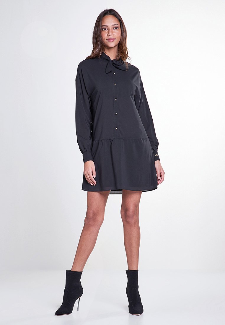 Stay effortlessly chic this Spring/Summer season with this Casual/Elegant black dress from Versace Jeans. The perfect blend of comfort and style, this versatile piece is ideal for any occasion. With its flattering silhouette and timeless design, this dress exudes sophistication. Elevate your wardrobe with this must-have piece that will never go out of style.