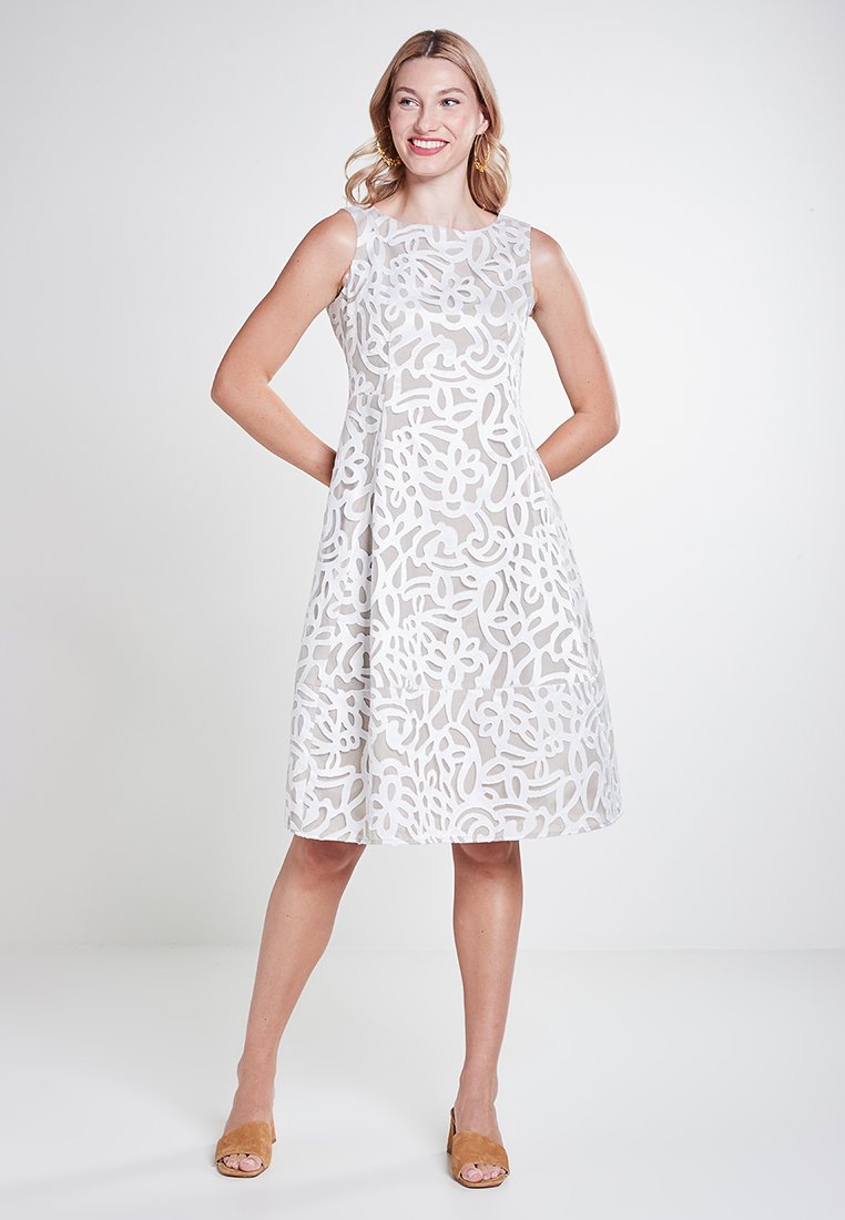 Elevate your Spring/Summer wardrobe with this Casual/Elegant dress from LUISA CERANO. In a crisp white hue, this versatile piece is perfect for any occasion. The flowing silhouette and intricate details add a touch of sophistication to your look. Stay stylish and comfortable all season long in this must-have piece.