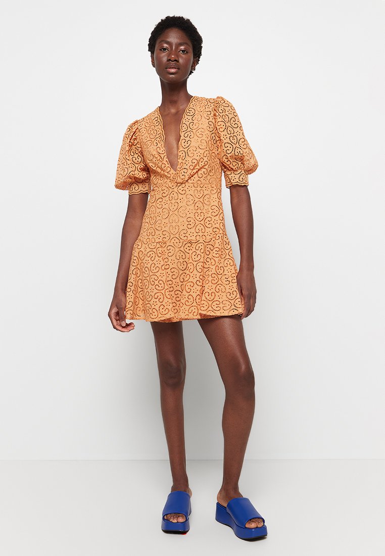 Get ready to embrace the warm weather in style with this Casual/Elegant dress from sandro. Perfect for the Spring/Summer season, this orange dress exudes effortless chic. Whether you're heading to a daytime event or a garden party, this versatile piece will keep you looking fabulous. Elevate your wardrobe with this must-have dress for a touch of laid-back sophistication.